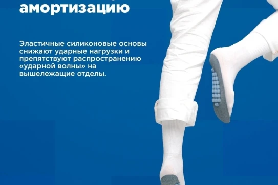 Мы заботимся о здоровье ваших ног! Поэтому используем только качественные материалы. Основание стелек состоит из силиконовых опор. Они действуют как маленькие пружины − поглощают напряжение и давление на свод стопы. Верхняя часть сделана из экокожи − она не вызывает аллергических реакций и дарит комфорт при ходьбе в любой обуви